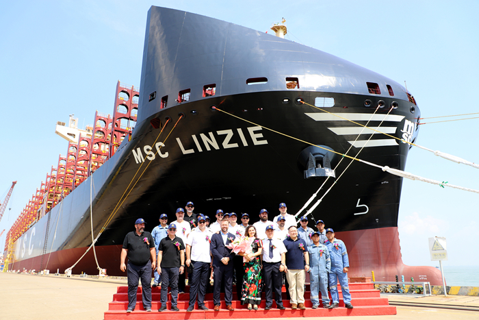 為MSC建造的第九艘LNG雙燃料16000TEU集裝箱船“MSC LINZIE”輪交付離廠