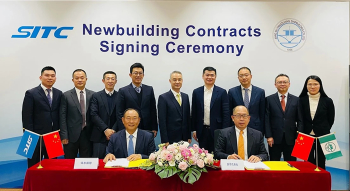 11月30日,雙方再次聚首上海,共同簽署1艘2700TEU集裝箱船和4艘2400TEU裝箱船的新造船訂造合同。集團董事長任樂天先生,集團副總經(jīng)理張濤先生,海豐國際董事局副主席兼首席執(zhí)行官楊現(xiàn)祥先生,海豐國際執(zhí)行董事、海豐航運集團總裁薛明元先生,海豐航運集團副總裁肖森元先生等共同見證新訂單成功簽約。