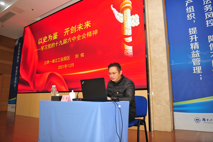 為深入學習宣傳貫徹黨的十九屆六中全會精神,12月29日下午,公司特邀江陰市委宣講團成員、園區(qū)黨委委員、紀委書記劉銘來司進行黨的十九屆六中全會精神宣講。