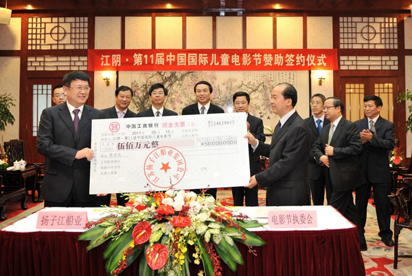 江蘇揚(yáng)子江船業(yè)集團(tuán)公司為第11屆中國國際兒童電影節(jié)贊助500萬元