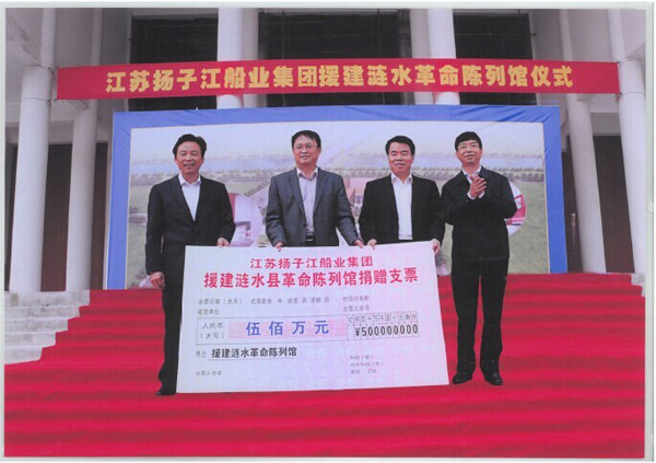 2012年9月13日,江蘇揚(yáng)子江船業(yè)集團(tuán)為江西吉安職業(yè)中等學(xué)校捐資助學(xué)500萬元